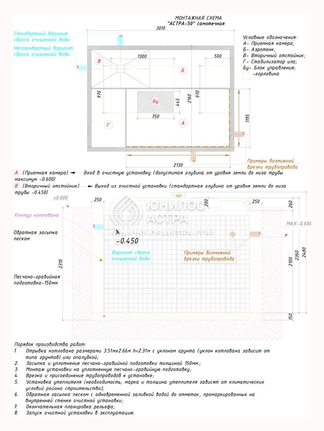 Очистку септик Астра 50 проводит в следующем порядке: